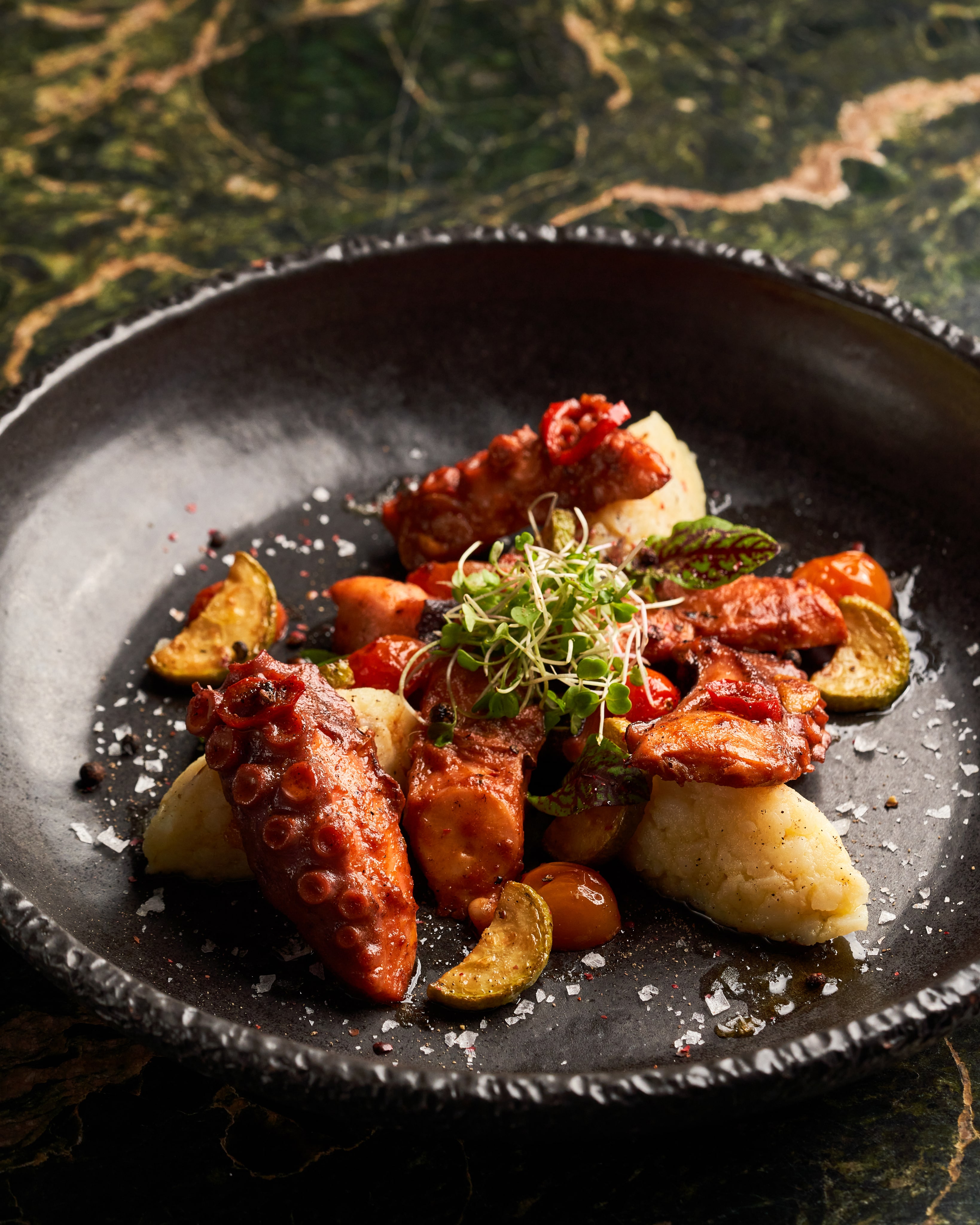 Inspired by the timeless elegance of Tuscany, Otto offers a refined and immersive dining experience where every design detail reflects warmth, heritage, and craftsmanship. Inside, guests are welcomed by a rich palette of deep green marble tabletops, aged wood finishes, and supple leather accents that evoke the rustic sophistication of Italian countryside estates.
